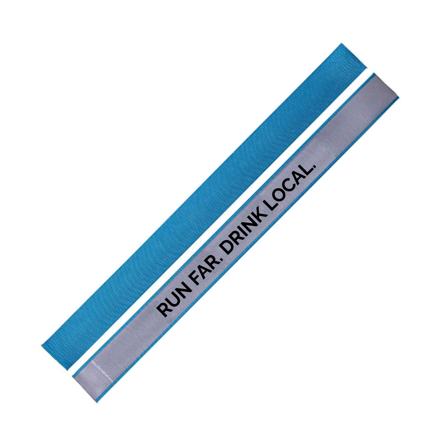 Slap on this safety band and light up the night! This awesome bright blue slap band makes staying visible FUN. It features a super reflective stripe printed with "RUN FAR. DRINK LOCAL." – perfect for your early morning jogs or late-night walks. Just slap it on your wrist or ankle and boom! Instant visibility. Get seen, stay safe!
